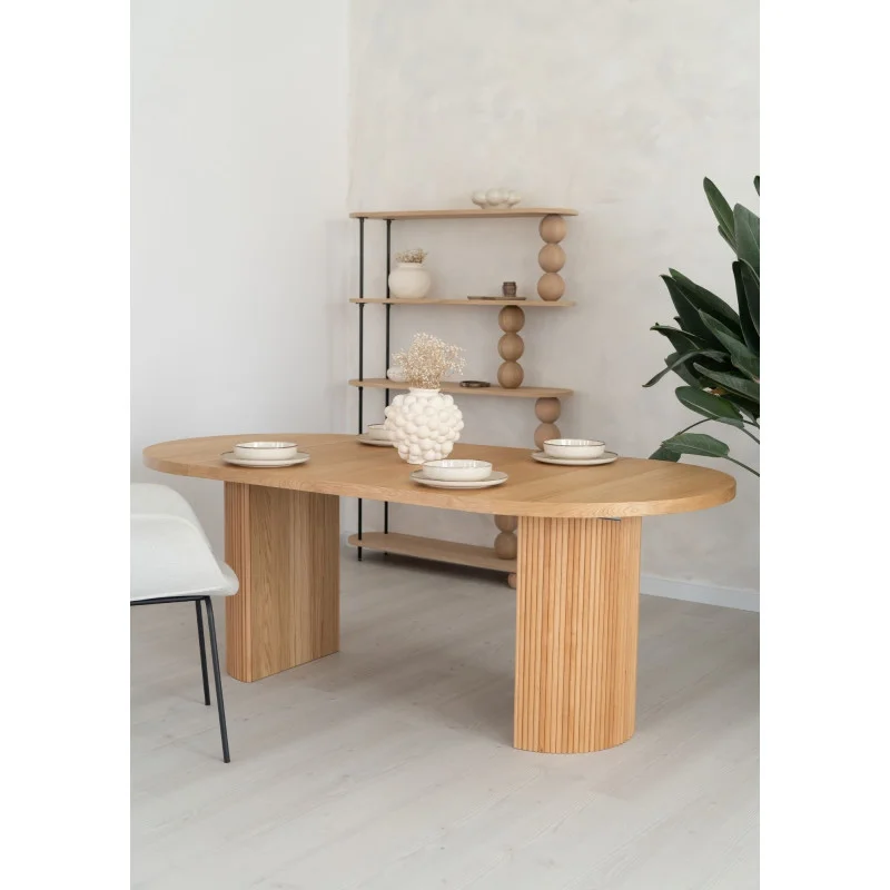 Dębowy stół z ryflowaną nogą to doskonały wybór dla osób, które szukają trwałych i stylowych mebli, łączących funkcjonalność z nowoczesnym wzornictwem.
