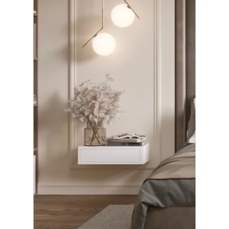 Szafka nocna MILEY MDF to połączenie funkcjonalności i elegancji, które wniesie nowoczesny akcent do Twojej sypialni. Dzięki wiszącej konstrukcji przestrzeń nabiera lekkości, a podłoga pozostaje wolna, co optycznie powiększa pomieszczenie. Biały, matowy front i gładkie wykończenie doskonale komponują się z wnętrzami w stylu nowoczesnym, skandynawskim lub minimalistycznym.