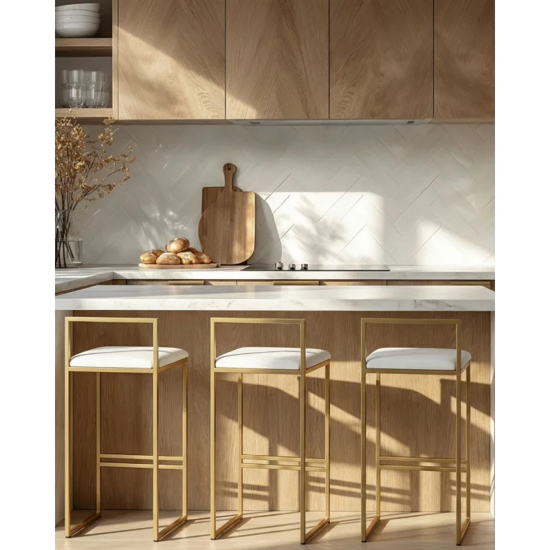 Te eleganckie hokerki to idealne połączenie minimalistycznego designu i luksusowego wykończenia. Złota rama w połączeniu z miękkim, białym siedziskiem wprowadza do wnętrza nowoczesność i elegancję, podkreślając charakter każdego pomieszczenia. Świetnie sprawdzą się przy wyspach kuchennych, barach czy wysokich stołach, łącząc komfort z estetyką.