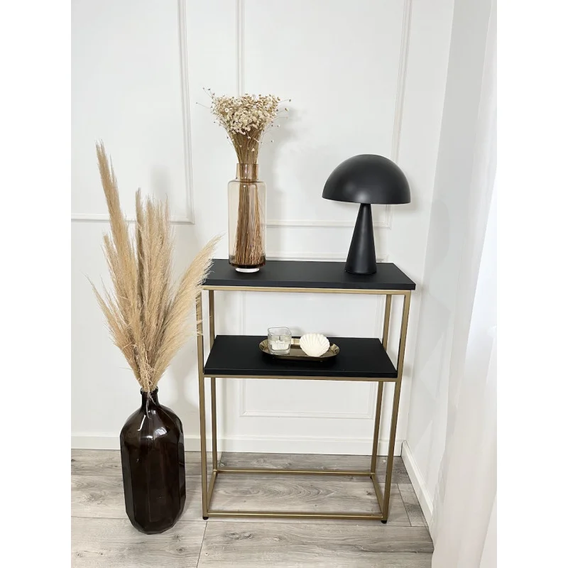 Ta nowoczesna konsola to idealne połączenie minimalizmu, funkcjonalności i efektownego designu. Czarne matowe półki w duecie ze złotą, lekką konstrukcją tworzą mebel, który sprawdzi się w każdym współczesnym wnętrzu – od stylu japandi, przez modern, aż po subtelny glamour. To propozycja dla osób, które chcą uporządkować przestrzeń i jednocześnie dodać jej eleganckiego charakteru.
