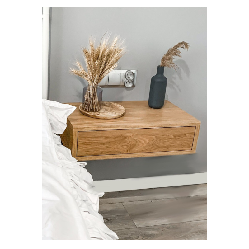 Wisząca szafka MILEY 70x30x15 to połączenie prostoty i funkcjonalności, które idealnie wpisuje się w potrzeby nowoczesnych wnętrz. Wykonana z drewna, z szufladami na drobiazgi, sprawdzi się jako toaletka, konsola lub półka w sypialni. Jej minimalistyczna forma pasuje do aranżacji w stylu Japandi, skandynawskim i nowoczesnym.